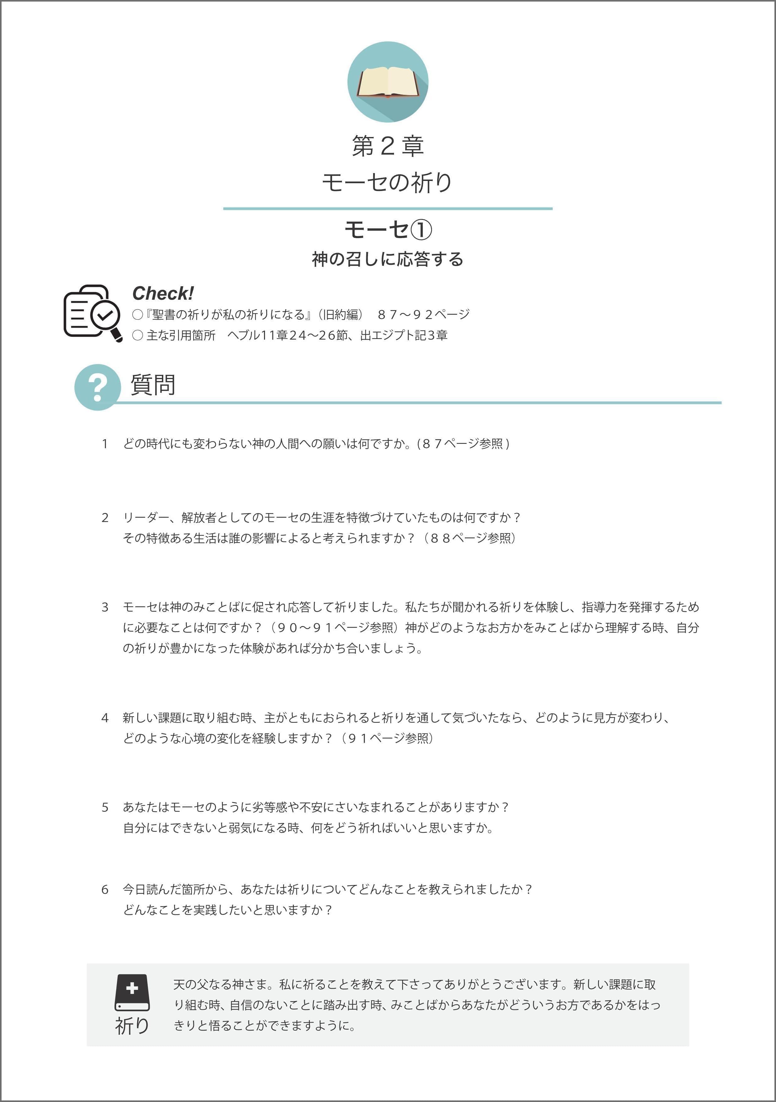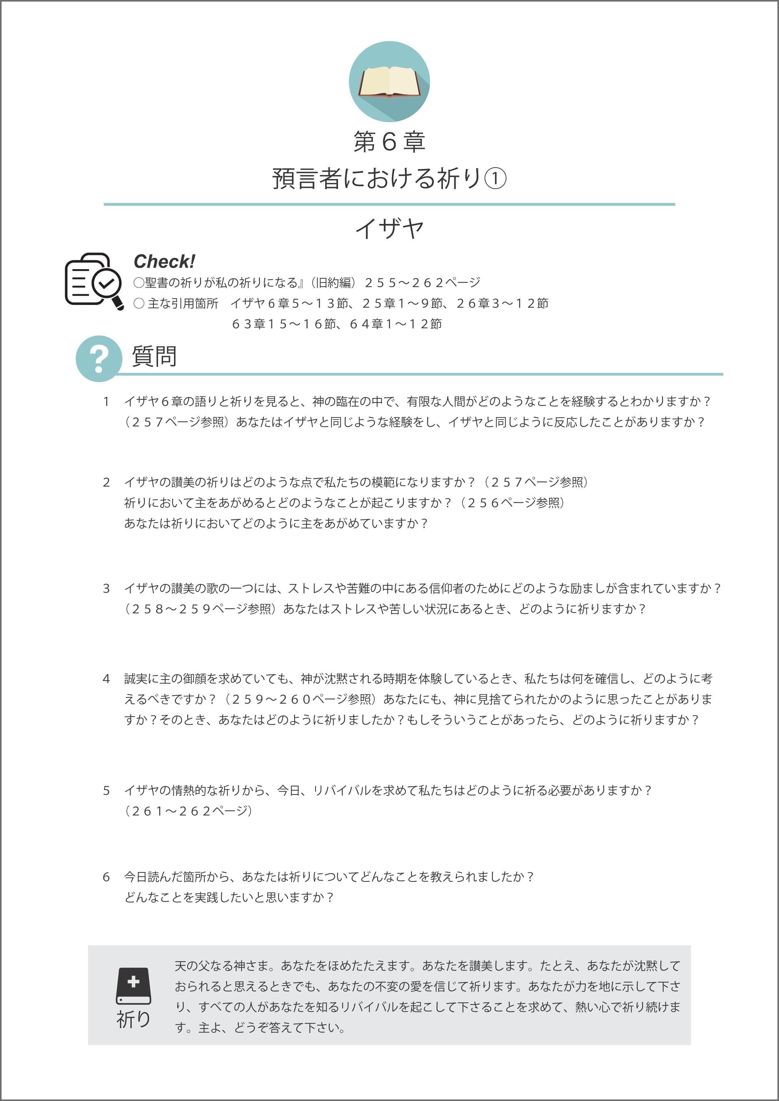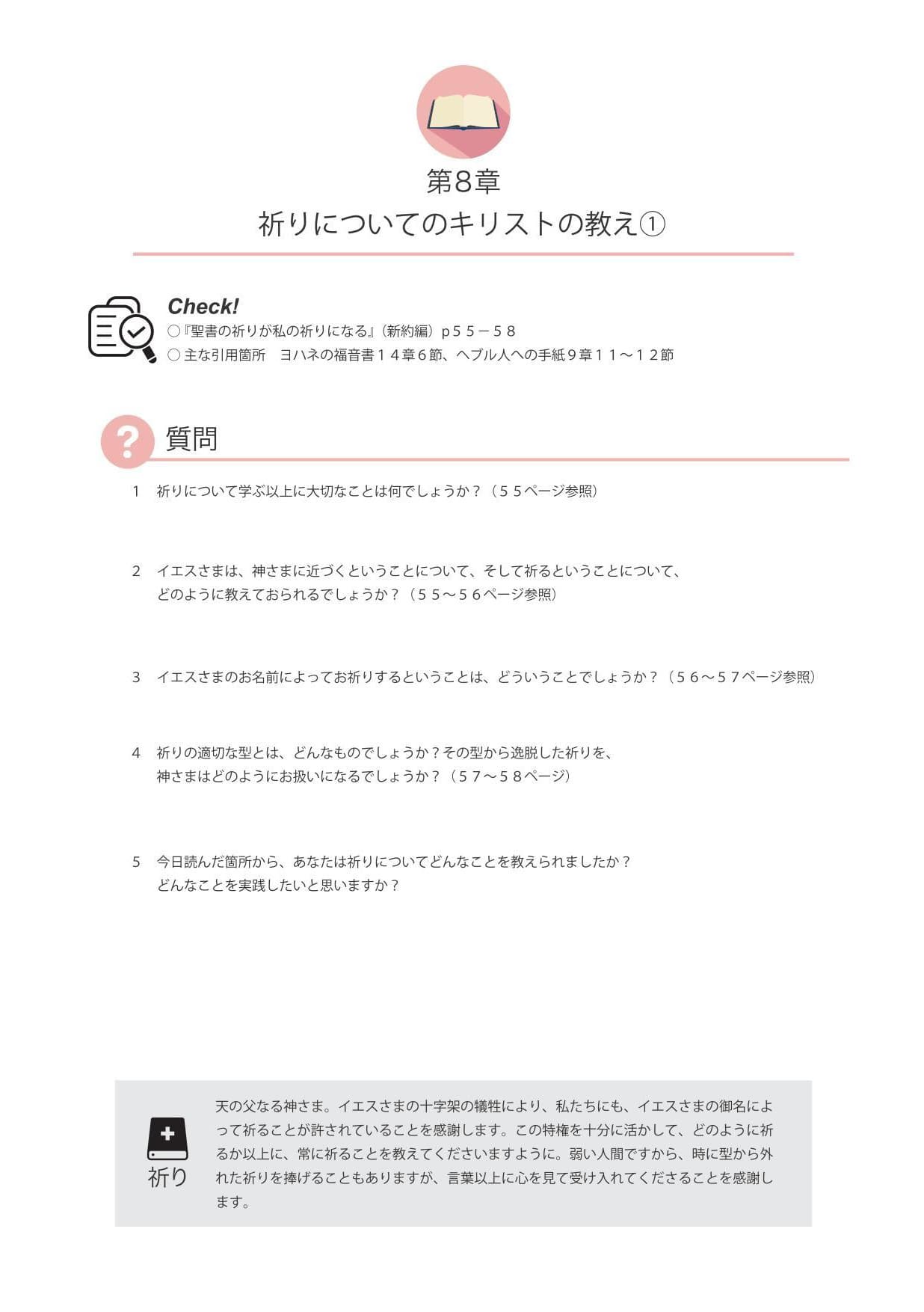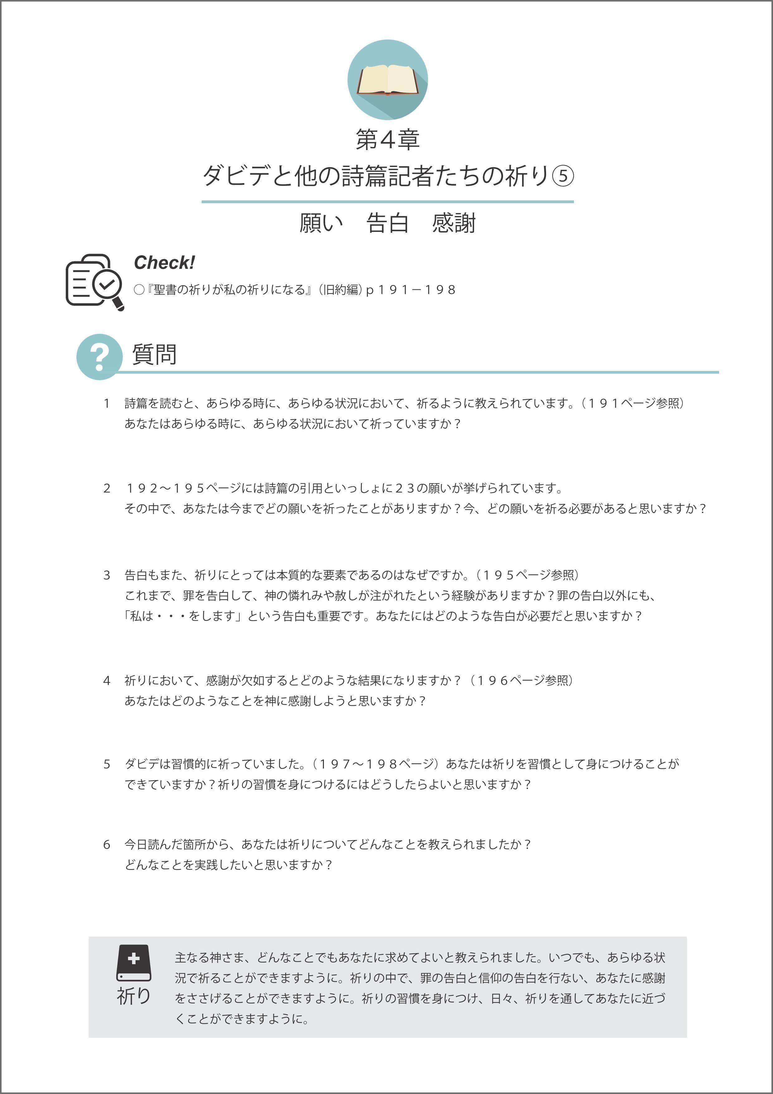 内容を理解するための質問と自分に適用する質問が合わせて5問程度あり、最後に短い祈りの文章があります。