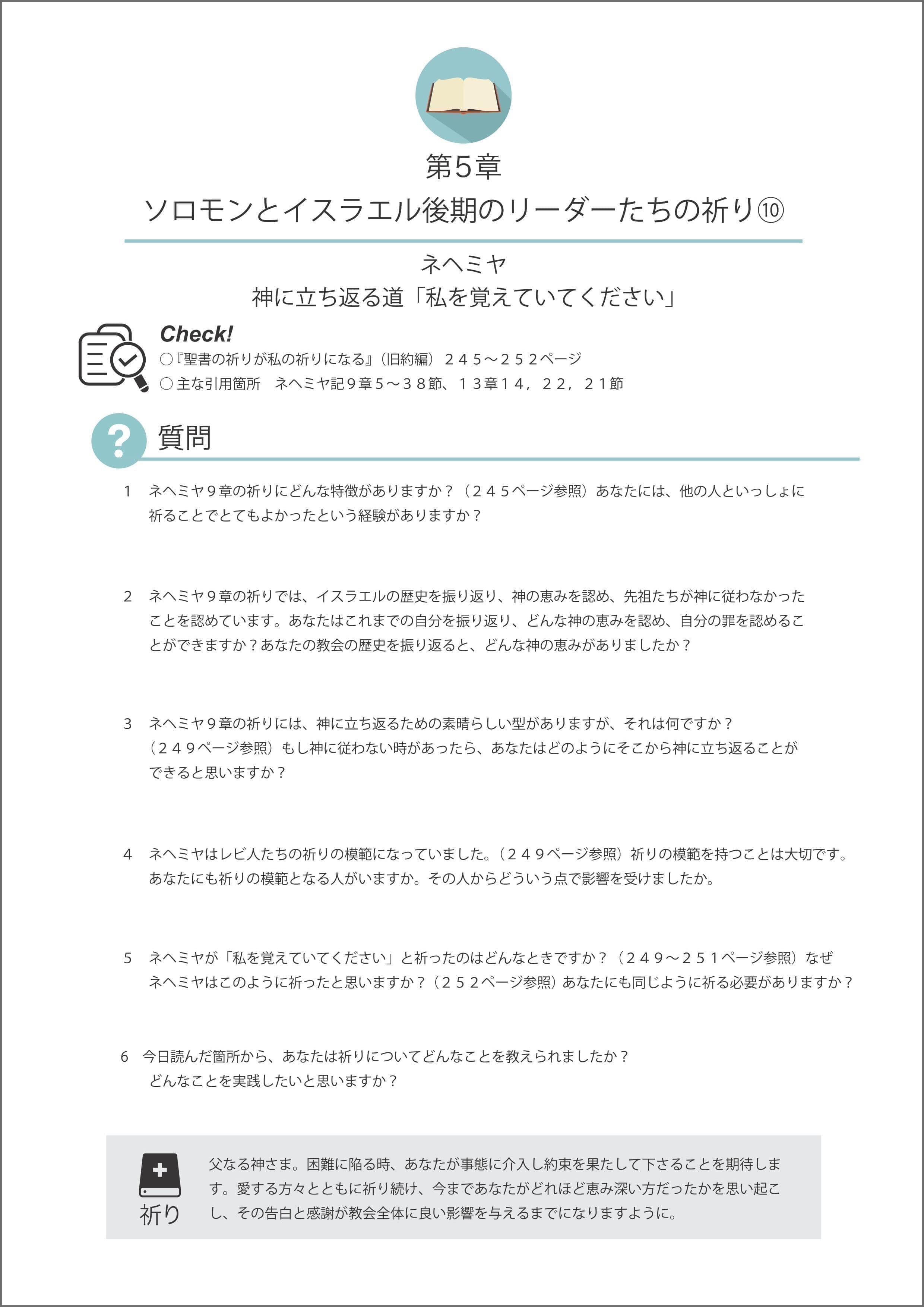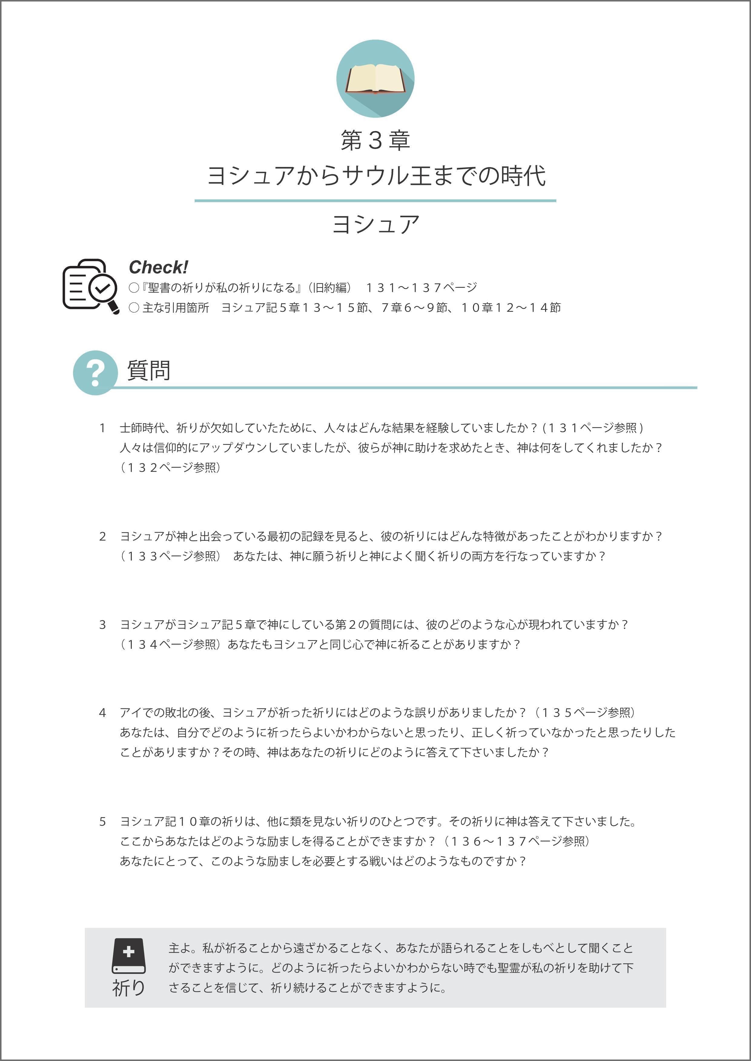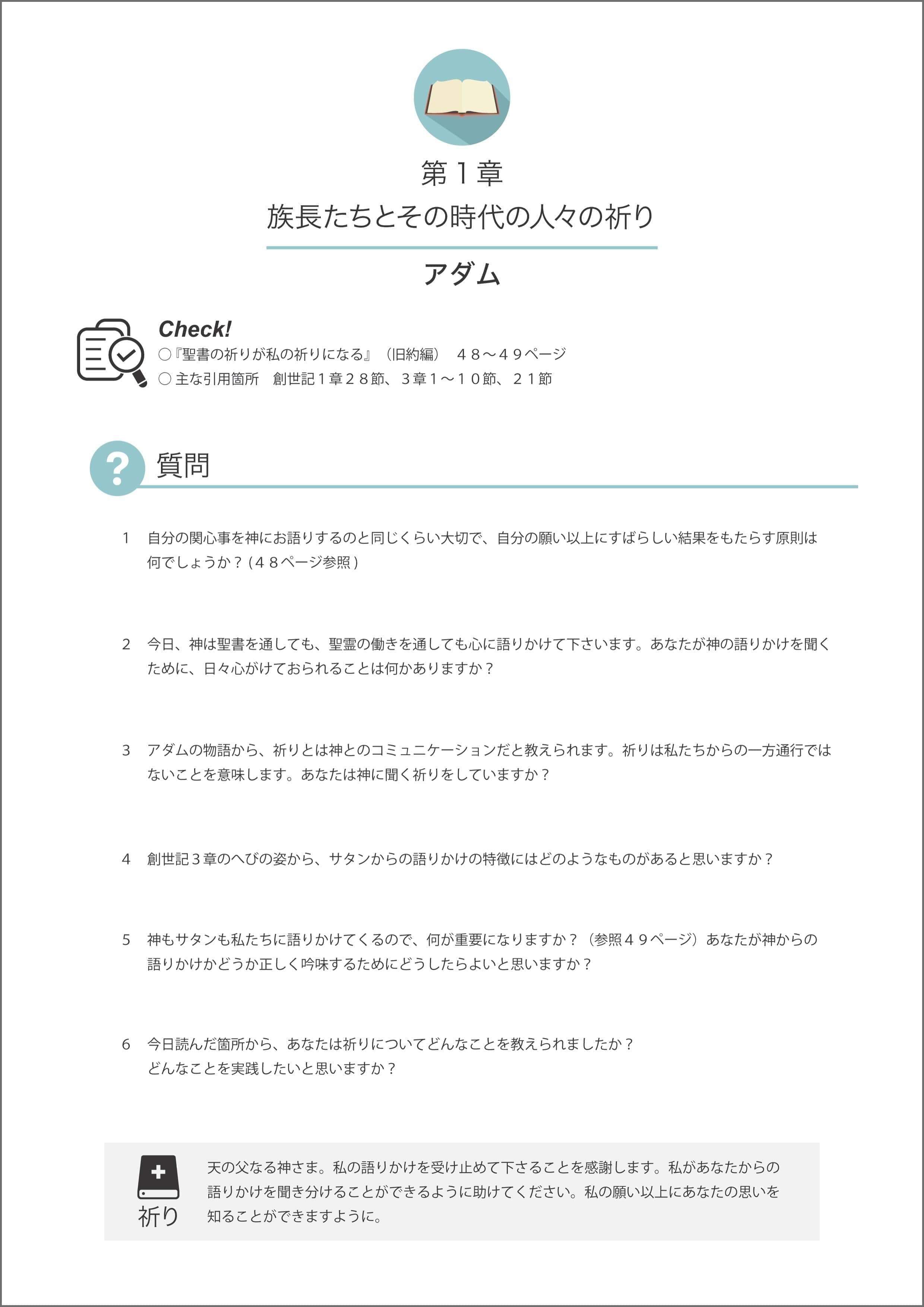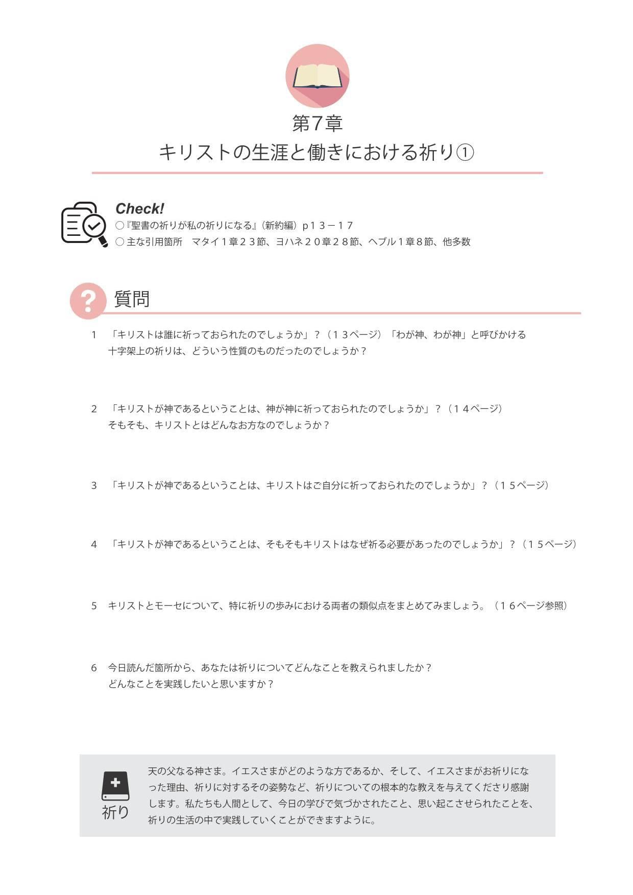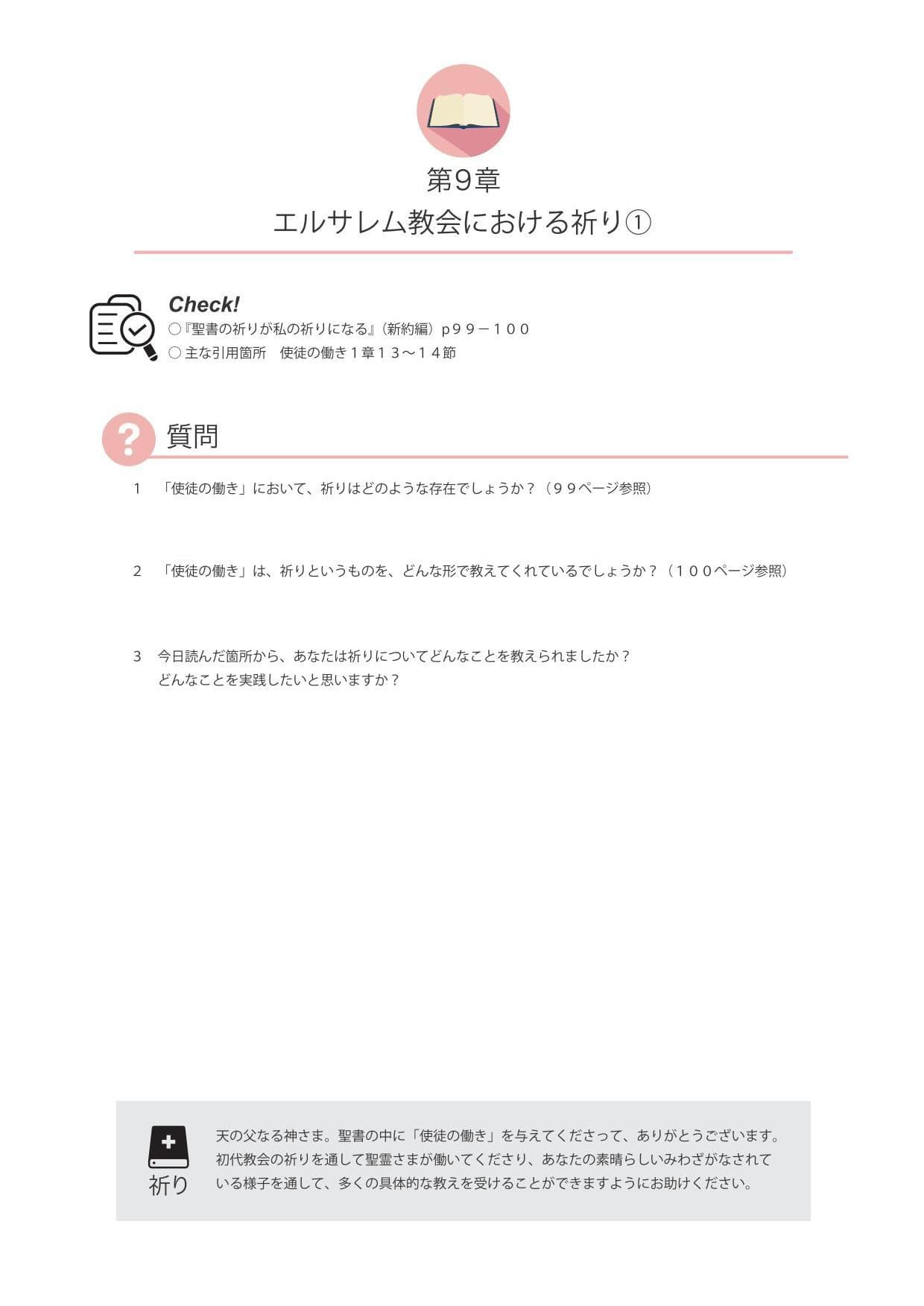 内容を理解するための質問と自分に適用する質問が合わせて5問程度あり、最後に短い祈りの文章があります。